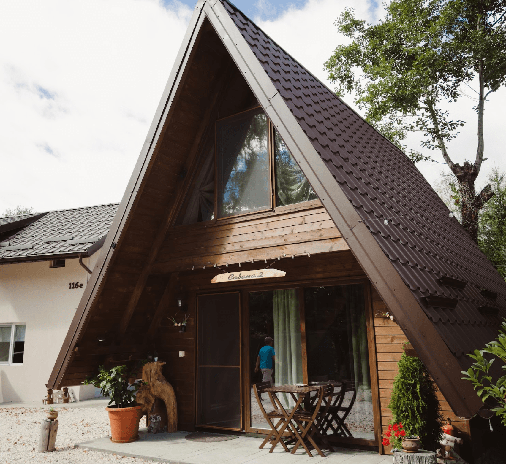 Cele două A-frame-uri, ridicate manual din lemn, și cabana principală păstrează spiritul muntelui viu, prin detalii simple, lumini calde și ferestre largi care lasă pădurea să intre înăuntru.