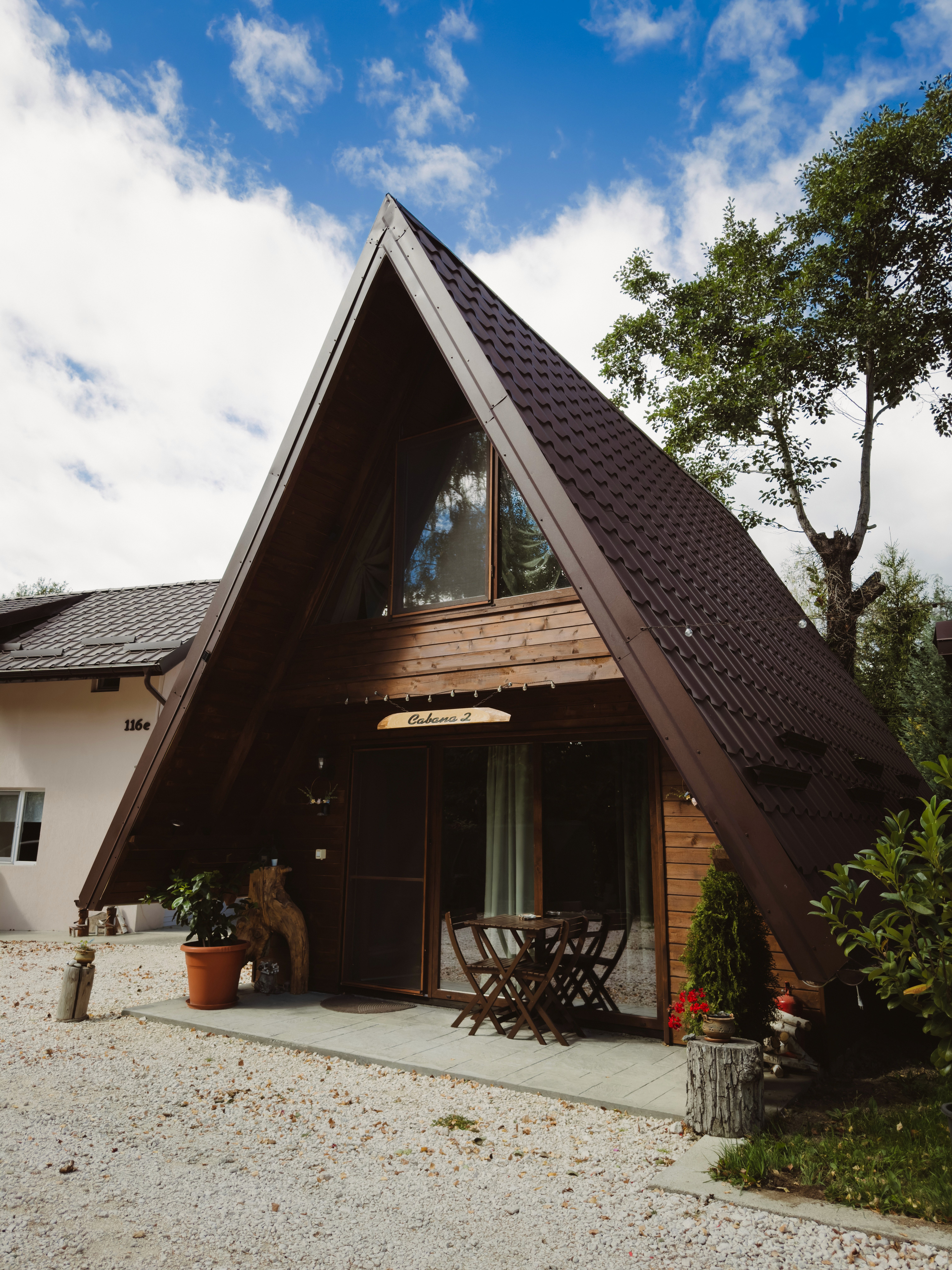 Primul A-frame Inspirată din arhitectura nordică, Cabana 2 a fost ridicată în 2021. O A-frame modernă, construită din lemn natural, creată pentru cupluri și pentru cei care caută o escapadă intimă în natură.
