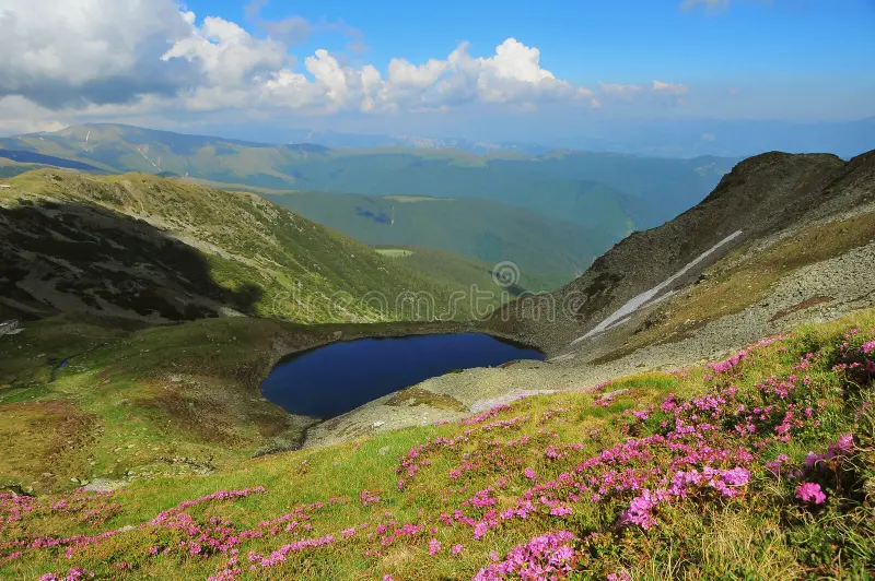 Zonă montană de hiking. Trasee montane de dificultate medie către Vf. Iezer Păpușa 2391m.